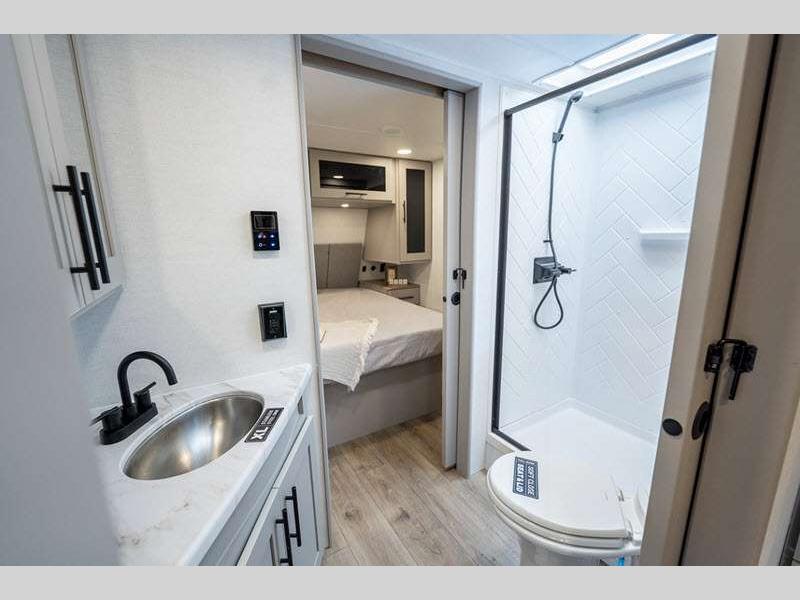 Sleeps 2 Slides 1 Length 23 ft 11 in Ext Height 10 ft 10 in Hitch Weight 568 lbs GVWR 7450 lbs Dry Weight 4992 lbs Fresh Water Capacity 45 gals Grey Water Capacity 45 gals Black Water Capacity 45 gals Available Beds Queen Refrigerator Type 12V Refrigerator Size 10 cu ft Cooktop Burners 3 Shower Size 32" Number of Awnings 1 Water Heater Type On Demand Tankless Awning Info 15' Axle Count 2 Shower Type Radius Solar Wattage 200 watts Similar Floorplans