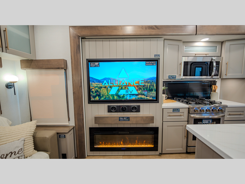 Alliance RV Paradigm fifth wheel 312RK highlights: Rear Kitchen Fireplace Pantry ... more about Paradigm 312RK