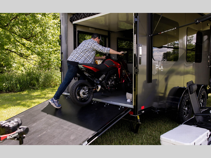 If you're looking for a small footprint with full amenities then you came to the right place with these PLA 450 toy hauler travel trailers! They are easy to tow and can maneuver behind a half ton truck and even a large SUV. With a configurable garage area, you can bring your side-by-side, golf cart, motorcycle, kayak, ATV, e-bikes or whatever your wild side desires.