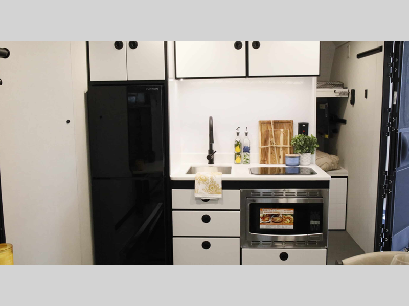 Sleeps 2 Length 24 ft 11 in Ext Width 8 ft 6 in Ext Height 10 ft 6 in Int Height 7 ft Exterior Color White, Black, Silver Frost, Charcoal, Pewter Hitch Weight 875 lbs GVWR 7700 lbs Dry Weight 4850 lbs Cargo Capacity 2850 lbs Fresh Water Capacity 50 gals Grey Water Capacity 45 gals Black Water Capacity 45 gals Tire Size 205/75E15LRD Furnace BTU 19000 btu Refrigerator Type 12V Refrigerator Size 6.2 cu ft Convection Cooking Yes Cooktop Burners 2 Number of Awnings 1 Axle Weight 3500 lbs Garage Size 10 ft 5 in LP Tank Capacity 20 lbs Water Heater Capacity 6 gal Water Heater Type DSI LP Gas/Electric AC BTU 15000 btu Awning Info 16' Power w/Light Strip Axle Count 2 Number of LP Tanks 2 Shower Type Wet/Bath Shower Electrical Service 30 amp Similar Floorplans