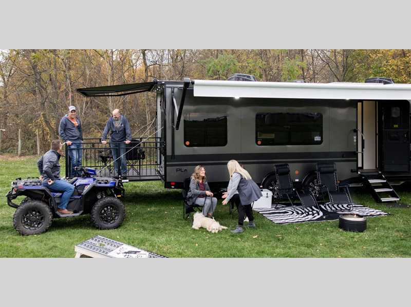 The new PLA 550 toy hauler travel trailers by ATC Trailers are ready for adventure when you are! These units will last a lifetime thanks to the full-perimeter, six-sided, integrated aluminum frame, and you'll find many at-home comforts that will allow you to stay at the campground at little bit longer!