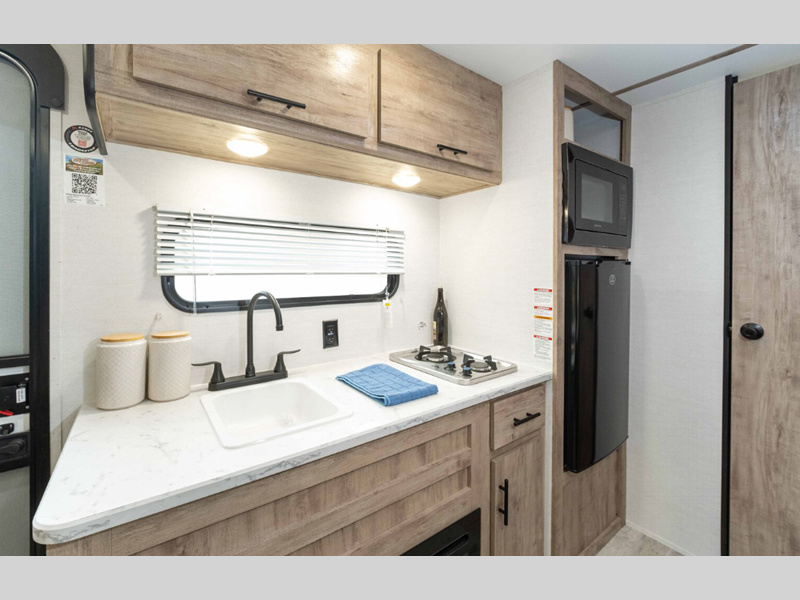Sleeps 3 Length 20 ft 11 in Ext Width 8 ft Ext Height 10 ft 4 in Int Height 6 ft 8 in Hitch Weight 360 lbs Dry Weight 2920 lbs Cargo Capacity 1080 lbs Fresh Water Capacity 23 gals Grey Water Capacity 36 gals Black Water Capacity 36 gals Cooktop Burners 2 Number of Awnings 1 LP Tank Capacity 20 lbs Water Heater Type Tankless AC BTU 13500 btu Awning Info Power Axle Count 1 Number of LP Tanks 1 Shower Type Tub/Shower Combo Electrical Service 30 amp Similar Floorplans