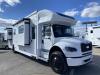 Sleeps 6 Slides 2 Length 36 ft 8 in Ext Width 8 ft 4 in Ext Height 12 ft 10 in Int Height 7 ft Interior Color Athens, Cyprus, Tuscany Exterior Color Flare, Kinetic, Propulsion, Surge, Polaris, Tundra, Atlas LR, Mojave Hitch Weight 20000 lbs GVWR 37600 lbs Fresh Water Capacity 150 gals Grey Water Capacity 75 gals Black Water Capacity 75 gals Generator 8 KW Onan Quiet Diesel Fuel Type Diesel Engine Cummins L9 Chassis Freightliner M2-106 Plus Horsepower 360 hp Fuel Capacity 100 gals Wheelbase 285 in Available Beds Mini King Torque 1150 ft-lb Refrigerator Type Stainless Steel French Door Residential Refrigerator Size 18 cu ft Convection Cooking Yes Cooktop Burners 2 Number of Awnings 1 Water Heater Type AquaHot 450D AC BTU 30000 btu TV Info LR 43" 4K Smart LED, BR 32" 4K Smart LED, Ext. 32" LED Awning Info Electric Lateral Arm w/LED Lights Washer/Dryer Available Yes Shower Type Radius Electrical Service 50 amp Similar Floorplans