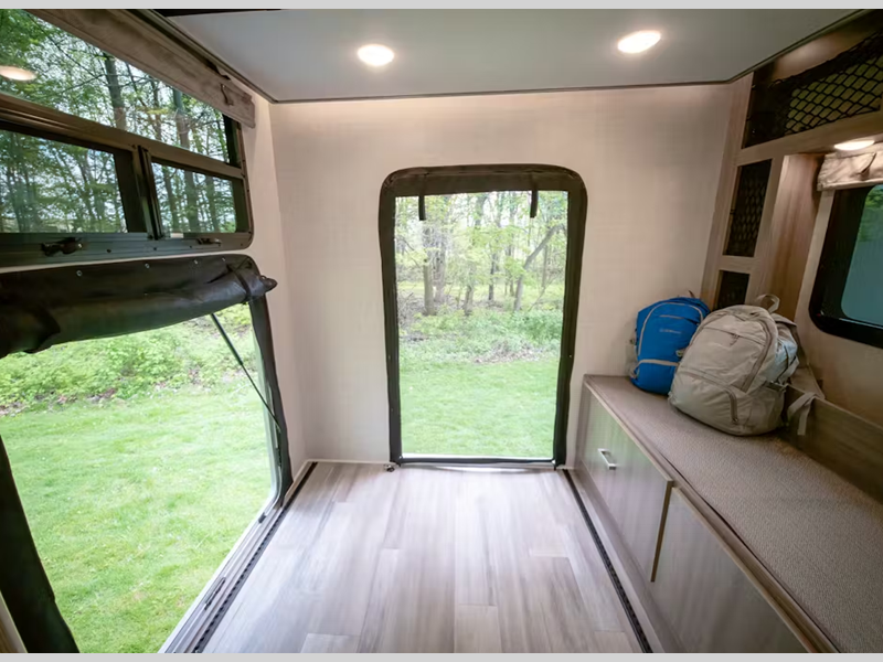 Sleeps 3 Slides 1 Length 25 ft 10 in Ext Width 7 ft 6 in Ext Height 11 ft Int Height 6 ft 8 in Interior Color Freshwater Pearl, Snow Leopard Exterior Color Standard Graphics on HD Max. Brilliant Carbon, River Ranch, Seashell Grey Full-Body Paint Choices Hitch Weight 5000 lbs GVWR 11000 lbs Fresh Water Capacity 31 gals Grey Water Capacity 37 gals Black Water Capacity 19 gals Furnace BTU 19000 btu Generator 50 State 4.0 kW Gas Fuel Type Gasoline Engine 3.5L V6 EcoBoost Turbo Chassis Ford Transit AWD Horsepower 310 hp Fuel Capacity 25 gals Wheelbase 178 in Available Beds Flip-Up RV Queen Torque 400 ft-lb Refrigerator Type 12V Dual Door Convection Cooking Yes Cooktop Burners 2 Shower Size 30" x 36" Number of Awnings 1 LP Tank Capacity 40.9 lbs Water Heater Type Tankless AC BTU 15000 btu Basement Storage 18 cu. ft. TV Info LR 32" Smart TV, BR 32" Smart TV Awning Info 16' 6" Power w/Integrated LED Lighting Gross Combined Weight 15000 lbs Shower Type Standard Electrical Service 30 amp Similar Floorplans