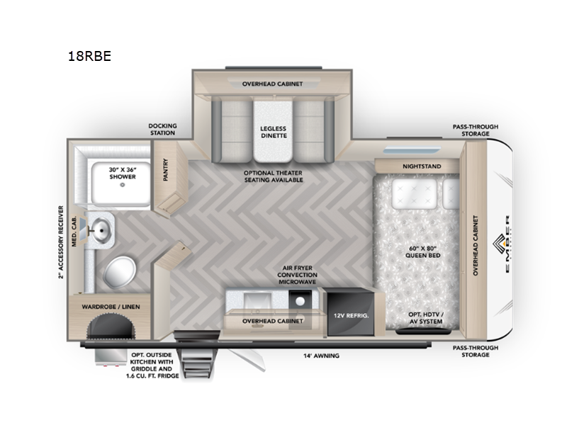 Ember RV E-Series Spark travel trailer 18RBE highlights: