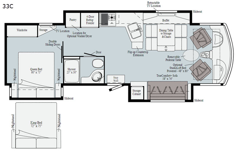 Winnebago Adventurer Class A gas motorhome 33C highlights: